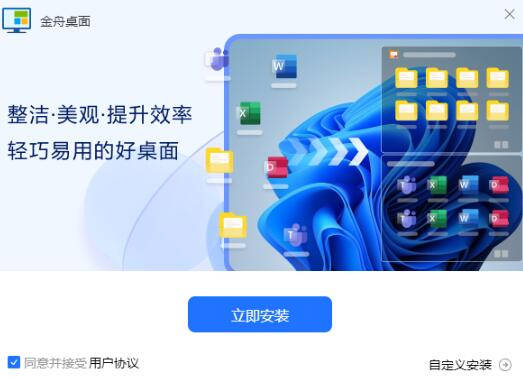 金舟桌面免费是一款支持磁盘映射与快捷访问的桌面整理工具软件,用户可以在桌面创建快捷文件夹分区直接访问磁盘深处的文件而不占用C盘空间,同时软件支持根据文件类型或自定义规则进行自动归类和实时整理,保持桌面时刻整洁,下面一起来看看吧。