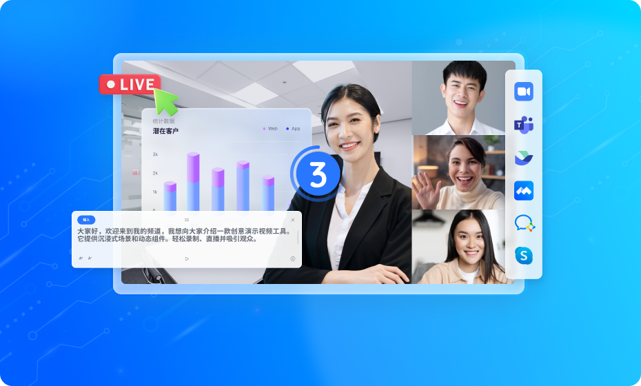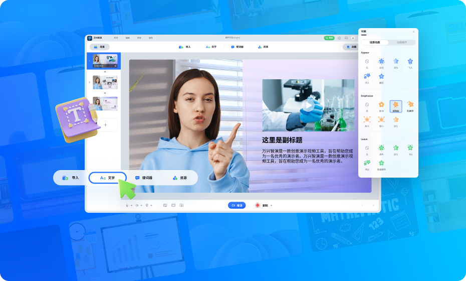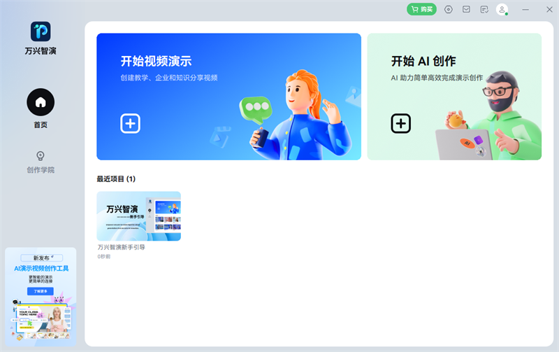 万兴智演是由万兴科技打造的AI演示制作软件,比传统的PPT演示厉害多了,它不仅具有AI智能创作功能,还可以实时融合人景,让你的演示过程变得更高大上,牢牢抓住听众的眼球,让大家沉浸在你的演讲中。