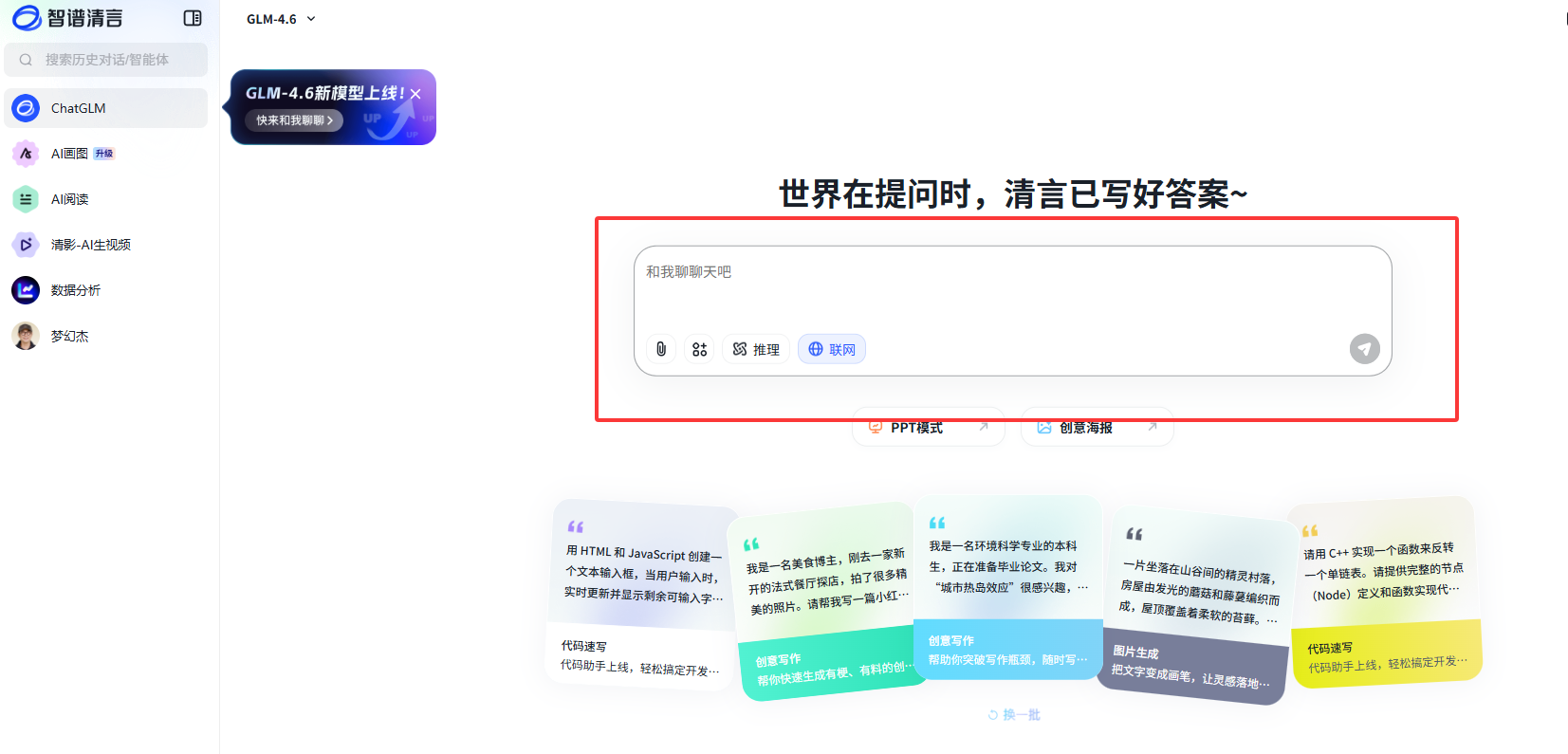 官网地址:https://chatglm.cn/main/guest?lang=zh