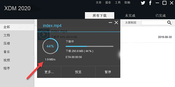xdm下载器中文版可以下载各种类型的文件,它最突出的能力就是下载网页中的视频,打开监视浏览器就会嗅探到资源,紧接着就可以开启下载任务了,在任务窗口中可以看到下载进度,如果不想下载了的话也可以随时暂停。