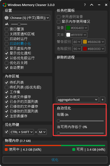 4、自动优化:用户只要自己设置一个内存条件即可让软件来自动优化了,后台运行提高效率。