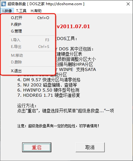 集成多种经典且功能强大的DOS工具,覆盖系统备份、分区管理等需求。