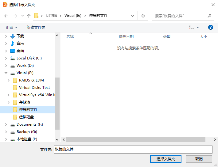 2、为了避免二次损坏,不允许把文件恢复到原分区,可以恢复到新的文件夹中。