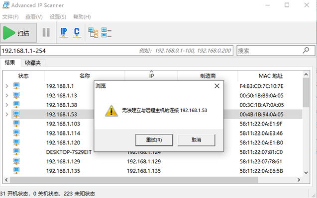 2、随后就可以对当前局域网的设备进行扫描和显示,对ip地址进行查看。