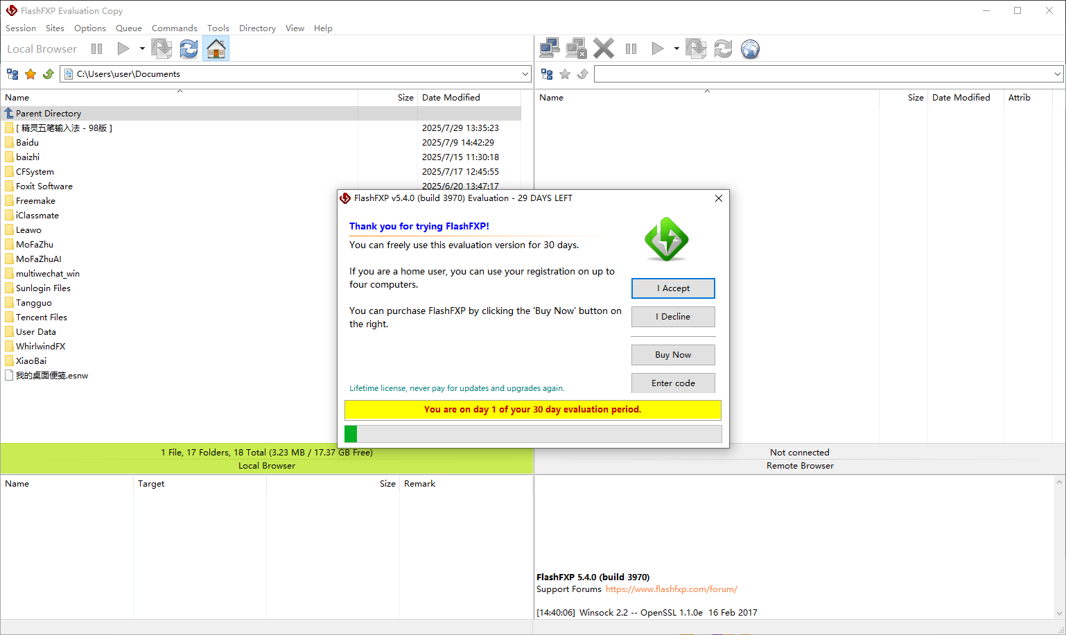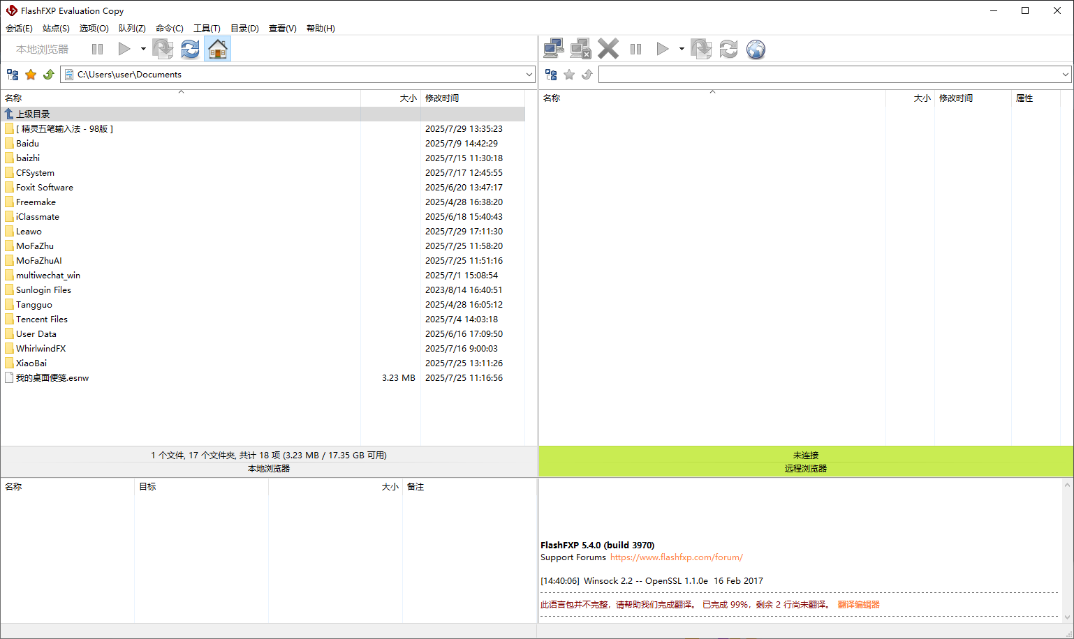 FlashFXP中文版是一款功能强大的文件传输工具,用户可以将电脑本地的文件传输到该软件的服务器当中,然后将相关的资源进行存储,该工具提供了非常大的服务器空间,用户能够随时根据自己的需求来点击进行上传传输。