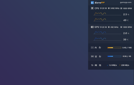 2、接着我们就可以开启这个功能,在桌面对自己的电脑信息进行监控,操作非常方便。