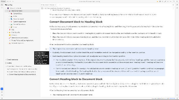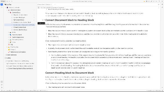 2、使用该软件时,用户可先在文档树创建笔记本和文档,通过斜杠命令或快捷键快速转换段落、标题、列表等块类型,并利用拖拽自由调整内容结构,其分屏与浮窗功能便于多文档对照编辑。