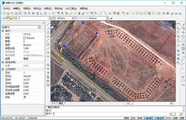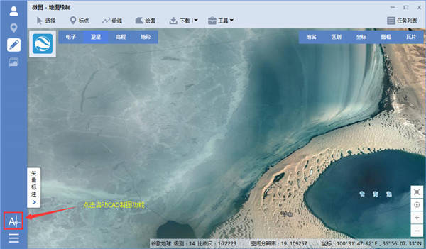 内置微图CAD功能模块,可以在线加载全球卫星影像作为底图进行CAD绘图。