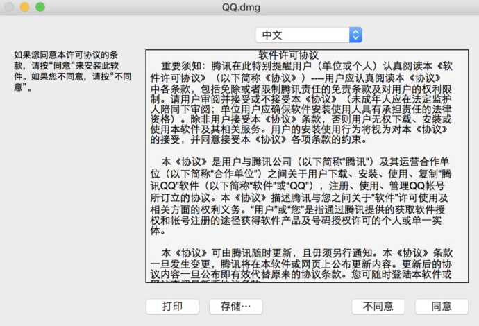 1、在本站下载并打开QQ Mac版安装包,进入安装界面;