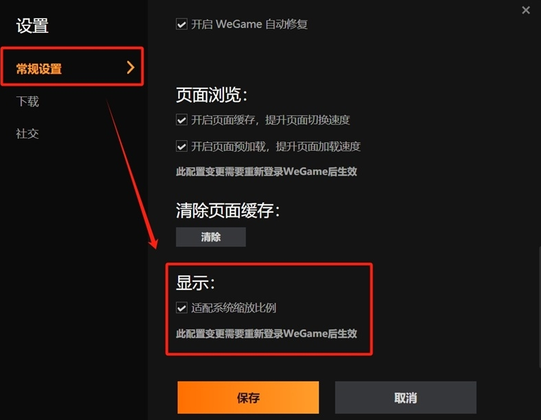 3、找到常规设置点击勾选适配系统缩放比例。