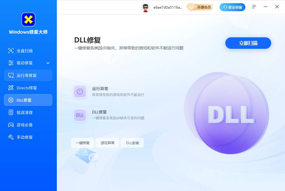 DLL系统修复专家电脑版是一款DLL智能修复工具软件,它致力于解决因DLL文件缺失、损坏或版本冲突导致的程序崩溃、系统报错等常见问题,软件采用深度扫描引擎与云端数据库联动技术,可精准识别异常文件,并提供一键修复、安全备份等全流程解决方案,适用于普通用户与IT技术人员,感兴趣的话快来下载吧。