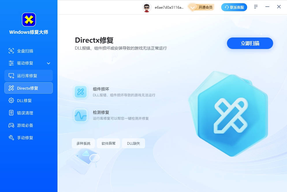 3、如果全面修复后问题依旧,可以尝试软件提供的针对运行库或DirectX等问题的专项修复模式。
