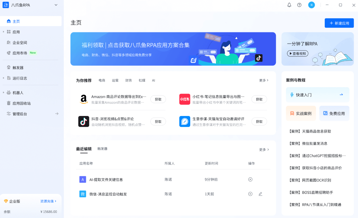 八爪鱼RPA数据采集是一款搭载了AI的自动化软件,软件内含海量的工具,从管理后台再到自动化操作等功能全面覆盖。而且还支持使用软件来生成文章和图片,软件会根据用户给出的命令来生成,非常适合新手使用。