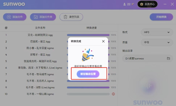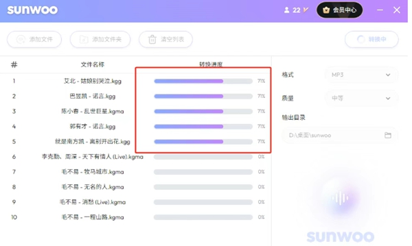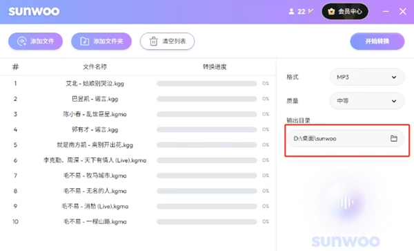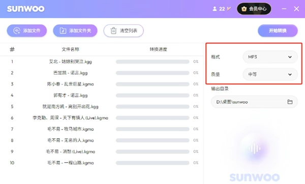 sunwoo音频格式转换器下载官方免费版是一款简洁交互设计的专业音频处理工具,支持解密各大音乐平台的加密格式,并转换为MP3、FLAC、WAV等通用格式,同时提供视频提取音频、批量转换等高效率功能,同时软件采用本地化处理技术,保障用户数据隐私,并通过多核并行运算显著提升转换速度。