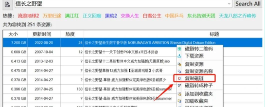 2、接着邮件选择对应的资源,选择复制磁链,进行下载即可。