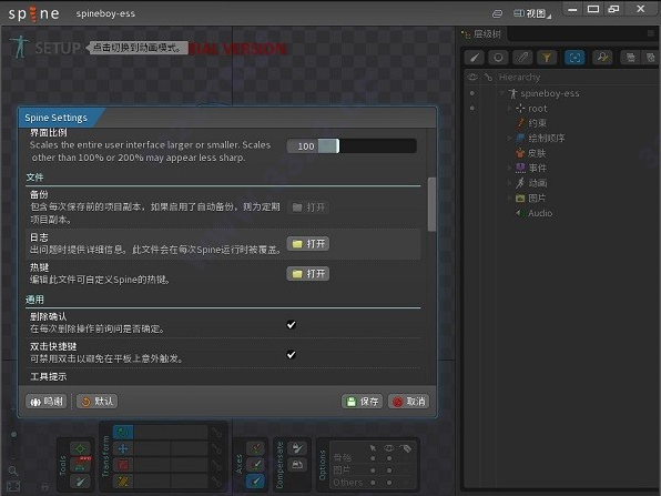 spine试用版是一款非常好用的动画制作工具,该软件可以用于利用人体关节来进行动画的控制,使得动画能够因此更加方便的进行操控运行,这样在动画人物移动以及动作处理的时候能够呈现出更加流畅自然的效果。
