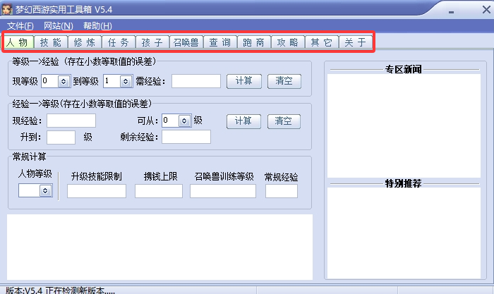 1、进入梦幻西游实用工具箱v5.4软件之后在最上面有很多相关的功能。