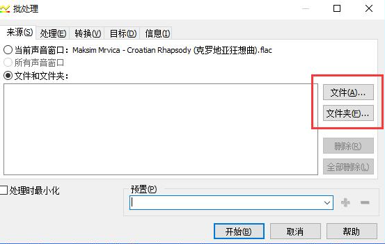 2、随后打开批处理窗口,添加需要处理的音频文件。