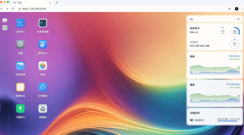 飞牛私有云是一款非常好用的nas系统,这款软件当中可以让用户能够自由进行的nas设备的组装,使得用户能够在家庭以及企业当中将各种数据上传到云端当中进行安全存储,这样就能够防止自己的数据丢失或者损坏了。