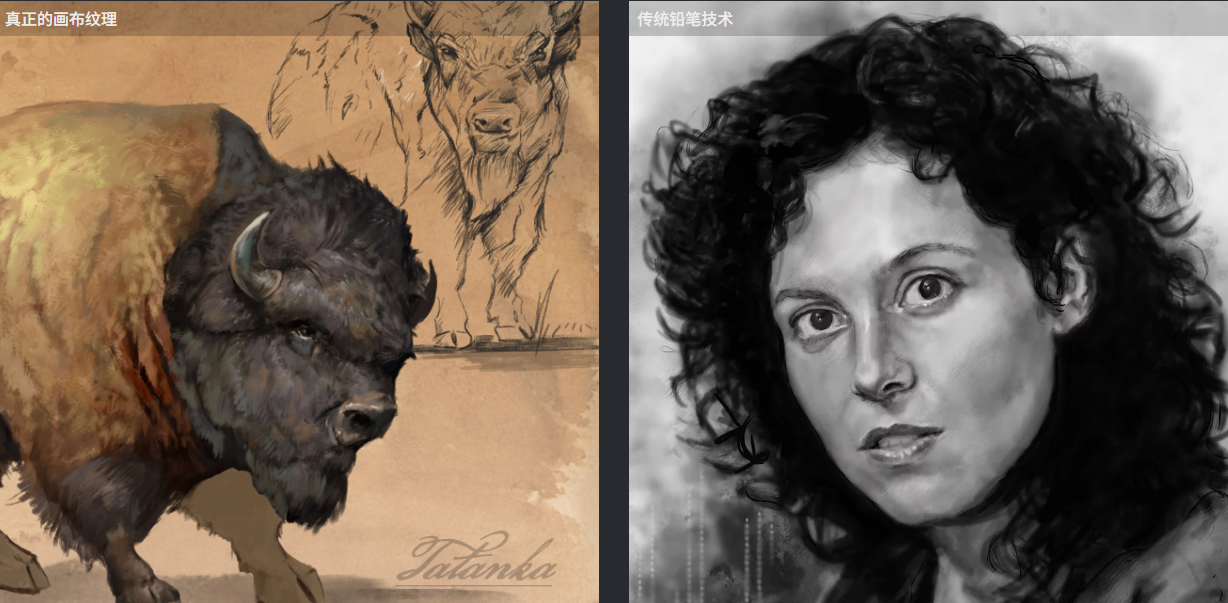 用户可以选择或自定义画布纹理,如平滑背景、素描纸、粗糙画布等。