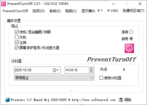 官网地址:https://www.softwareok.com/?seite=Microsoft/PreventTurnOff