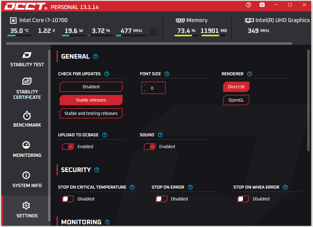 OCCT软件是用来测试并监控硬件稳定性的,当大家买了新的硬件后,可以使用它进行测试,看看这笔钱花得值不值,摸索硬件性能上限,以后打游戏的时候就方便设置参数了,在符合要求的范围内调整,这样就不用担心会烧坏硬件。