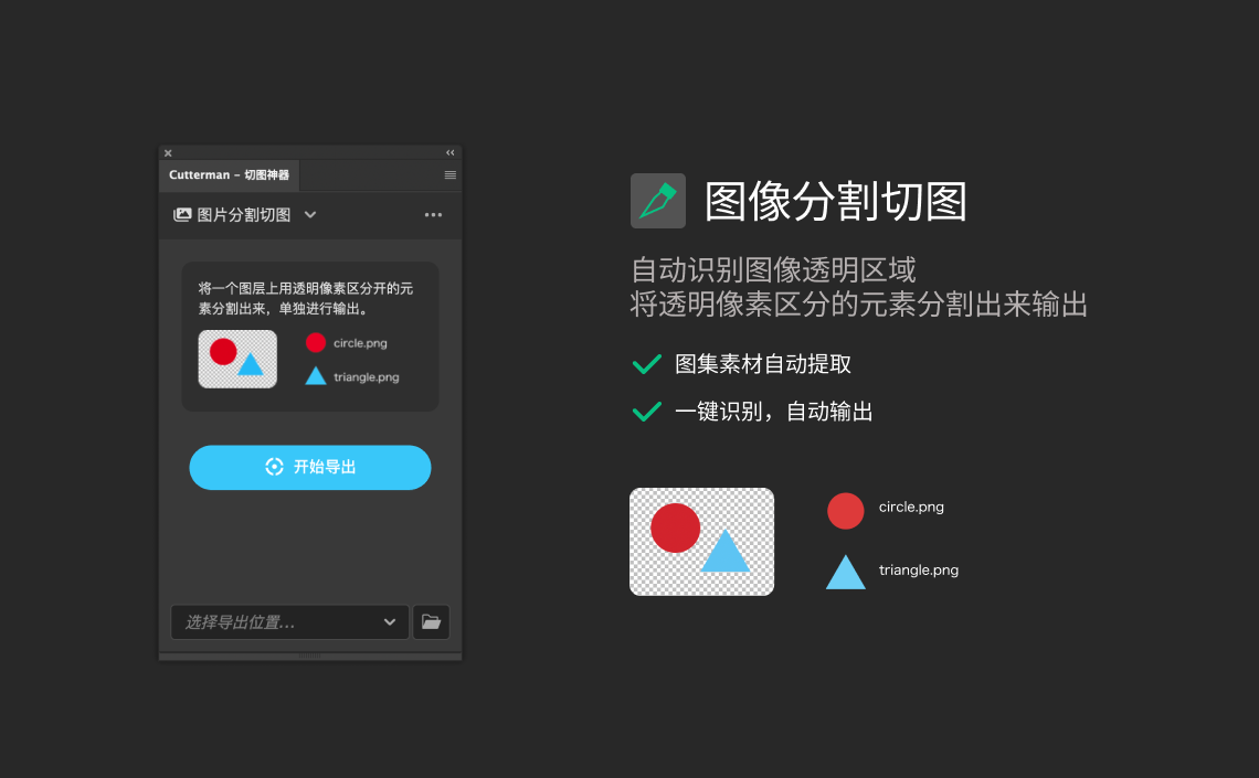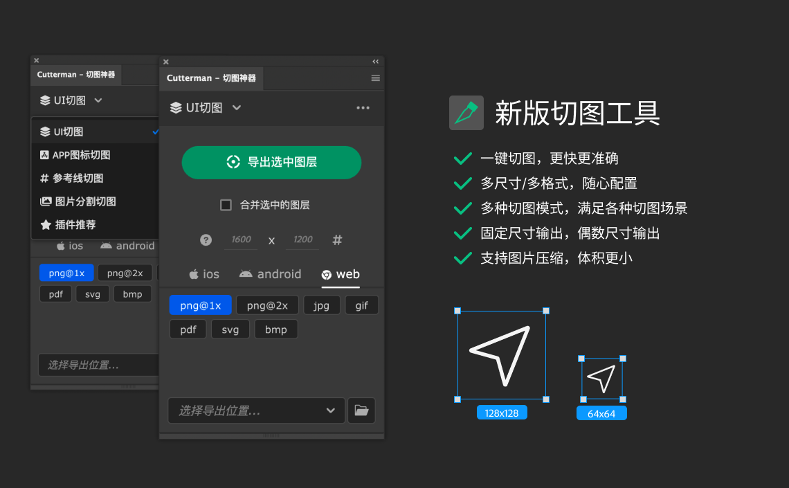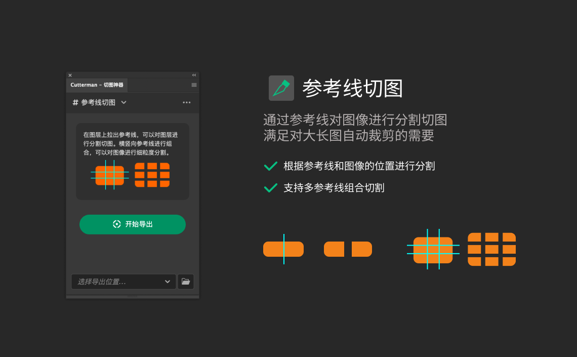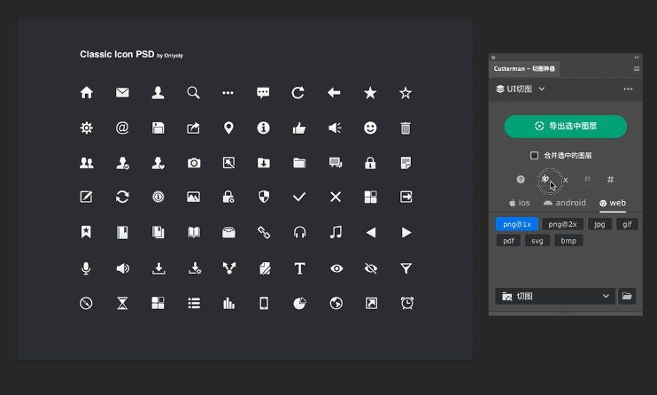 Cutterman是一个专门为PS软件打造的切图插件,彻底解决了传统手工切图的繁琐流程,大家只需要输入尺寸,它就会自动切割图片,提高了作图效率,切啊后的图片还可以开启PNG压缩,这样能大幅减少体积,方便传输和储存。