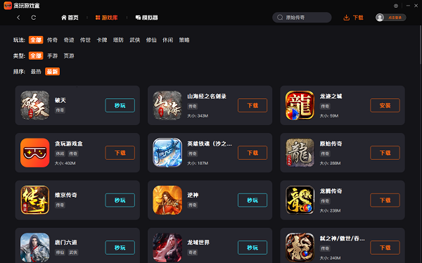 整合贪玩旗下核心资源,涵盖《原始传奇》《龙域世界》等60+款热门传奇游戏。