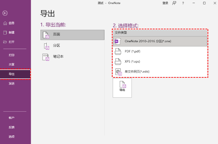 1、打开OneNote界面,点击左上角的文件,切换到导出界面。