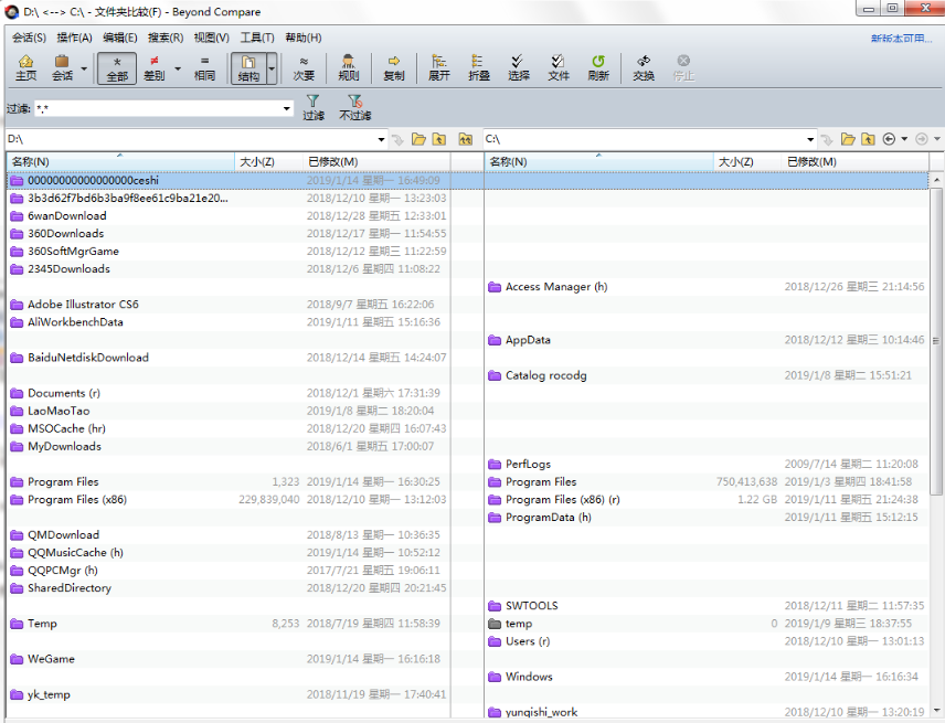 在文件夹比较的“对齐覆盖”设置中新增了“侧边”选项,支持从右到左匹配。