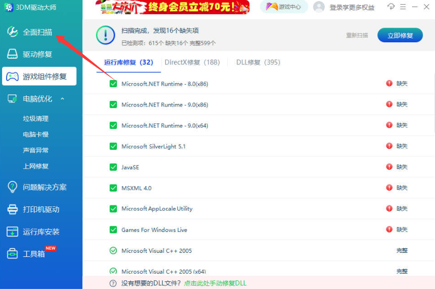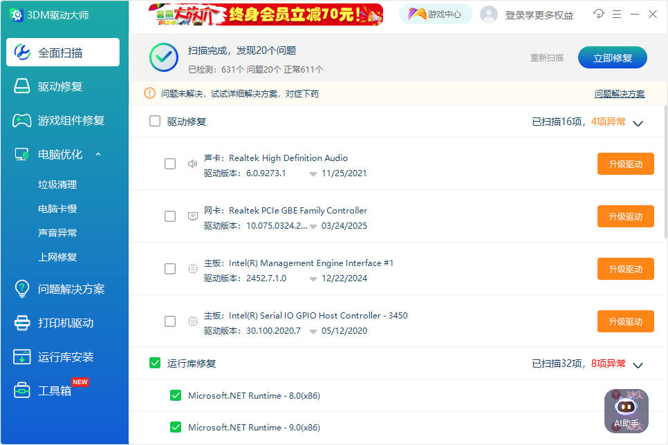 软件当中可以对当前的电脑系统进行扫描检测,从而能够及时的进行驱动升级。
