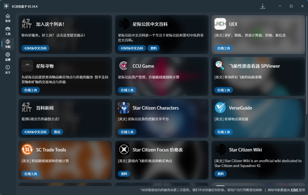 1、SC汉化盒子是一款专为游戏《星际公民》设计的辅助工具软件,它提供一键诊断、官网及工具网站汉化、游戏汉化、游戏性能优化等核心功能,旨在帮助玩家解决常见问题并提升游戏体验。