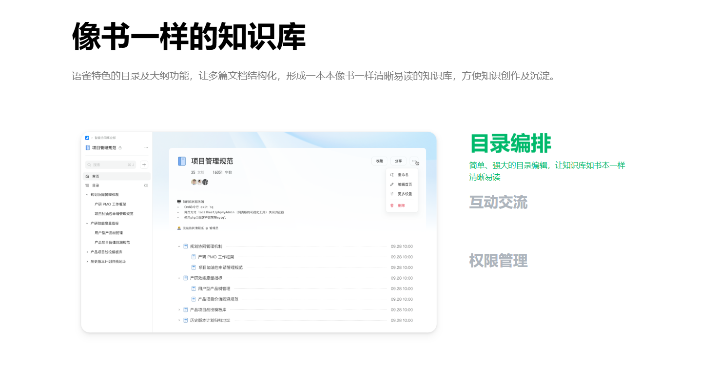2、一键共享:支持将自己创建的知识库共享给其他的用户,所有持有权限的用户都能查看。