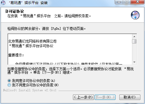 1、在本站下载易玩通娱乐平台客户端安装包,双击.exe文件后勾选用户协议。