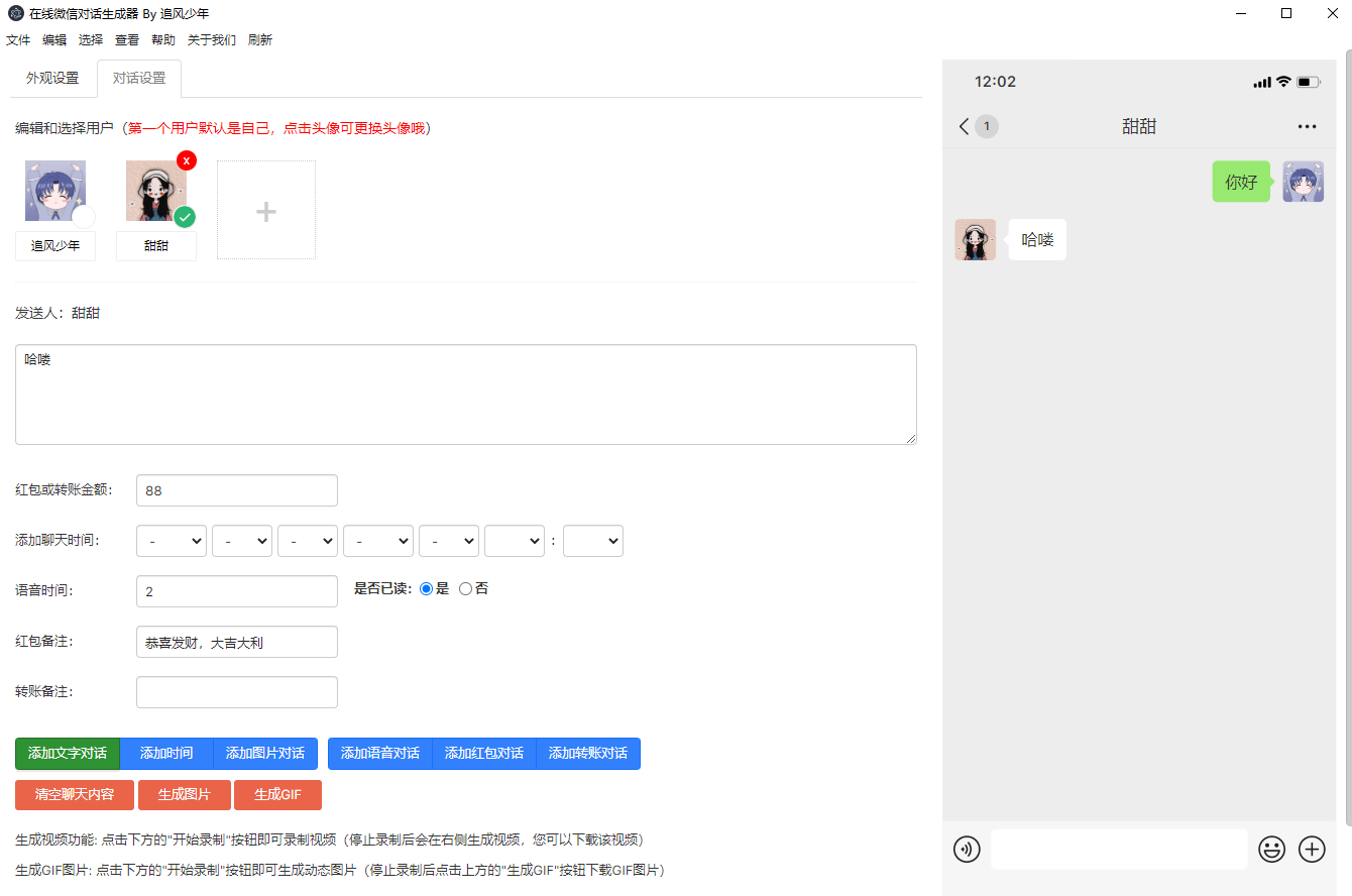 4、操作简单:用户只要打开软件然后在里面设置头像等参数就能制作对话了,没有任何难度。