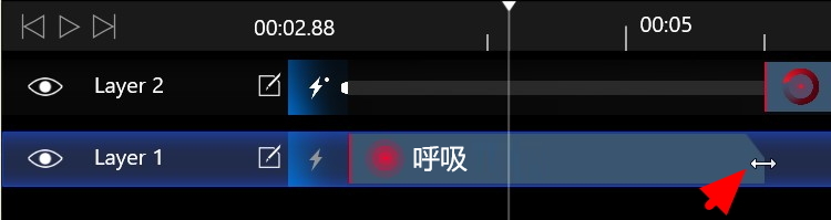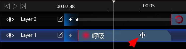 2、把鼠标放在时间轴上,出现一个十字箭头,可以拖动呼吸这一效果的出现位置。