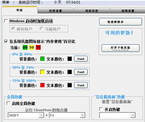 1、颜色设置:软件会根据当前的内存使用情况来变化显示的演示,让数据更加直观。