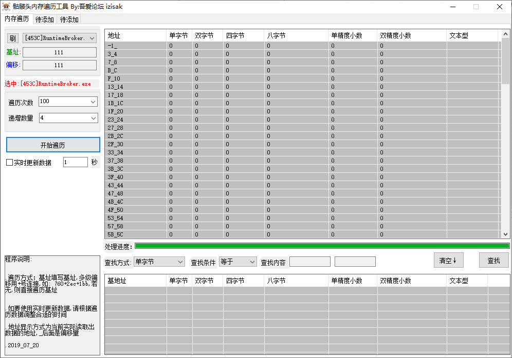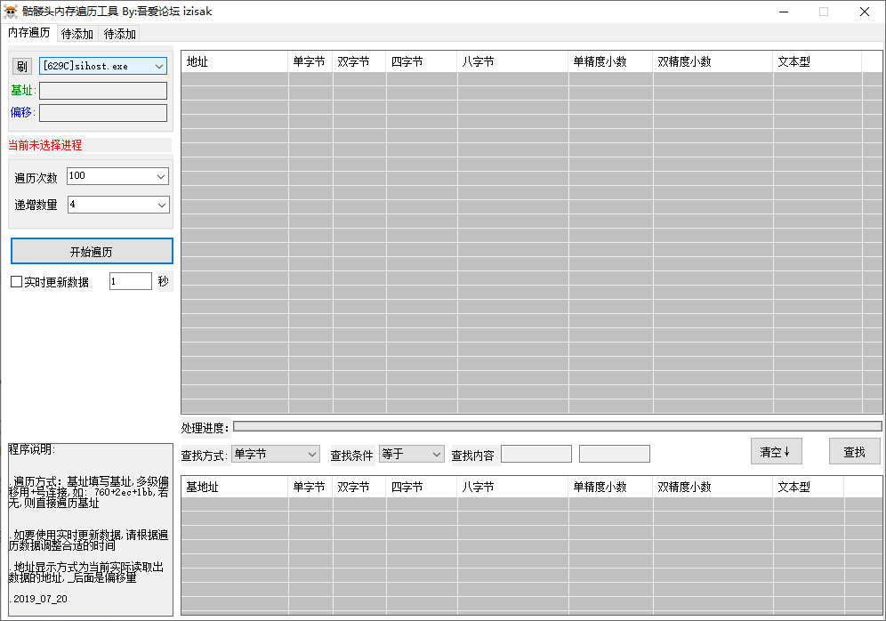 2、轻松上手:只要打开软件然后设置进程和遍历信息即可开始遍历了,没有难度。