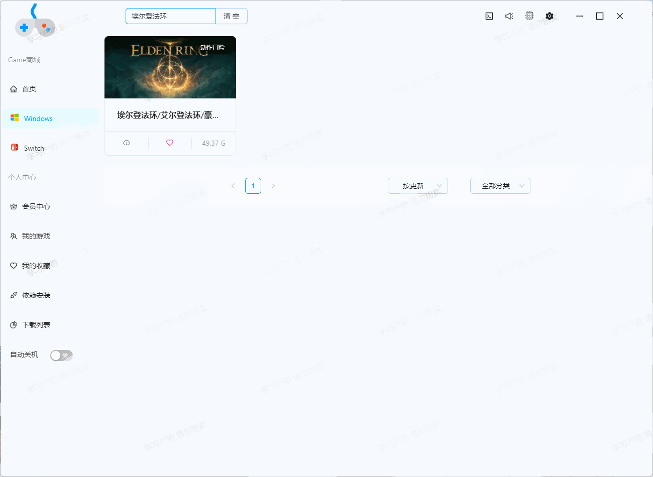 1、首先我们打开gamebox软件进入界面点击上方搜索框,输入想要玩的游戏名字搜索游戏资源,例如:艾尔登法环,搜不到的话就是没有。