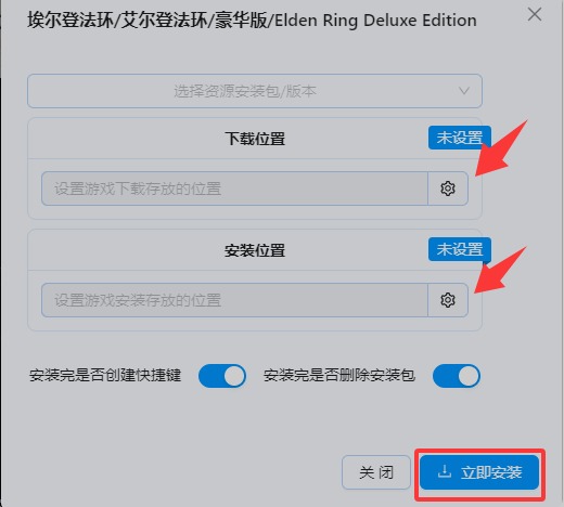 2、接着进入安装界面,选择下载位置以及安装位置点击右边的齿轮图标进行设置即可。