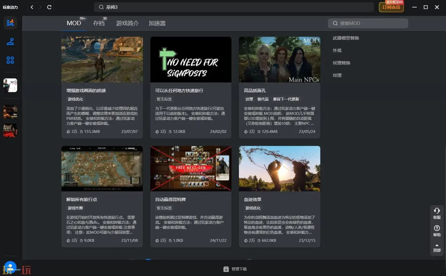 提供了非常丰富的游戏MOD可以选择,通过下载替换MOD使得玩家们的游戏内容变得更加有趣。