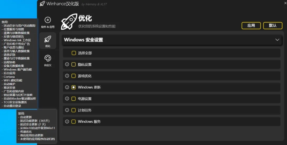 Winhance绿色版是一款轻量实用的系统优化工具,可以清理系统冗余文件,一键优化电脑运行速度,深度管理启动项与后台进程,实时监测资源占用,支持自定义优化方案,兼容多系统版本,接下来就帮助大家了解Winhance绿色版的功能及使用方法。