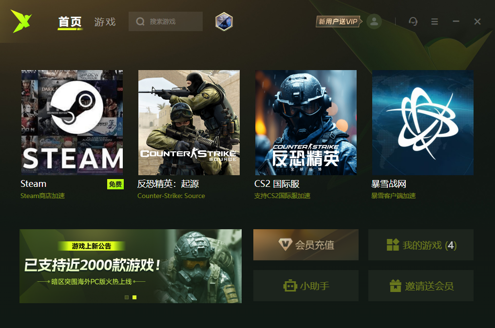 1、进入软件之后先选择一个需要加速的平台或者游戏。