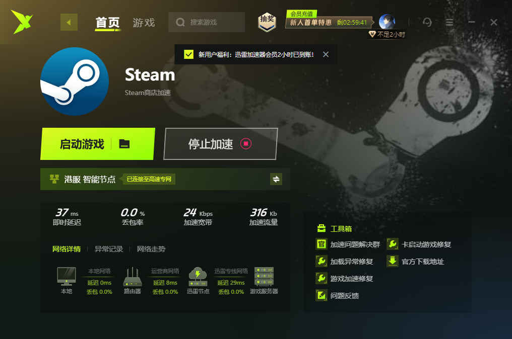 迅雷加速器永久免费是一款专门用于进行游戏加速的优质工具,用户可以利用这款软件来对自己的电脑现有网络进行加速,从而能够有效的优化延迟以及卡顿的问题,玩家们再进入游戏之后就能够沉浸式的体验游戏的乐趣。