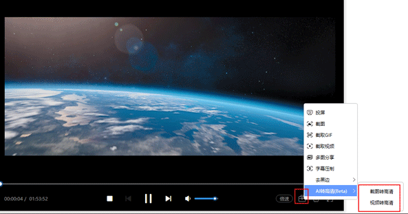 支持硬件加速及H.265高清解码,可调节亮度/对比度/饱和度,部分版本支持低分辨率视频AI转换高清输出。