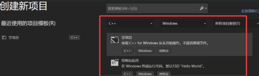 1、打开开发工具选择空项目,指定路径并命名,勾选C++支持选项。