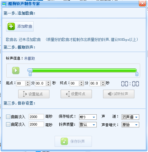 酷狗铃声制作专家绿色版是一款专业高效的铃声制作软件,软件的使用方式十分简单,非常适合新手上手使用。在进行制作的过程中时还能在线收听当前编辑的效果,然后根据效果来修改调整,直到制作出满意的铃声为止。