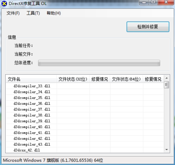 1、启动程序后点击一键修复,扫描系统DirectX组件并自动修复错误。
