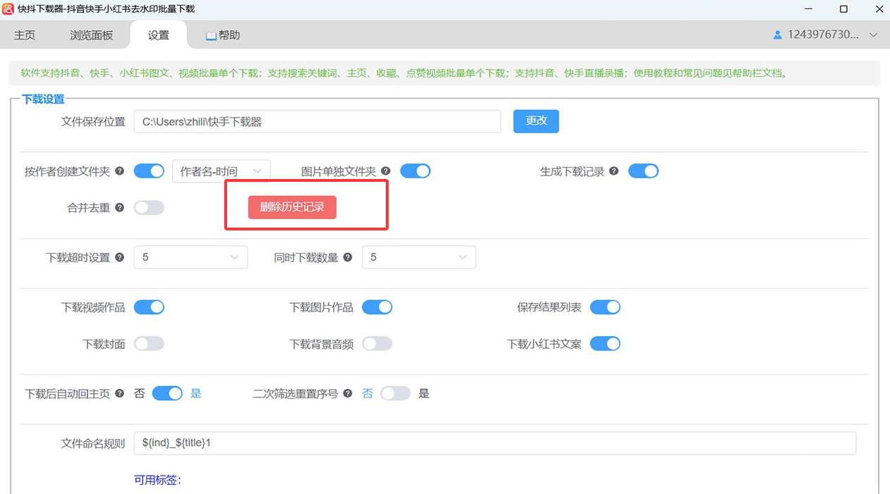 1、历史记录:每次进行下载后都会生成对应的历史记录,可以将历史记录清理掉。