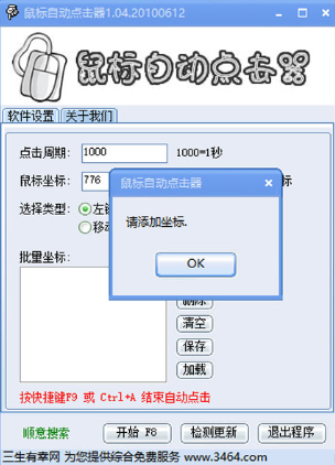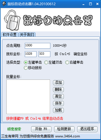 2、设置坐标:用户可以在软件里批量设置鼠标的坐标,还可以将设置的坐标保存下来。